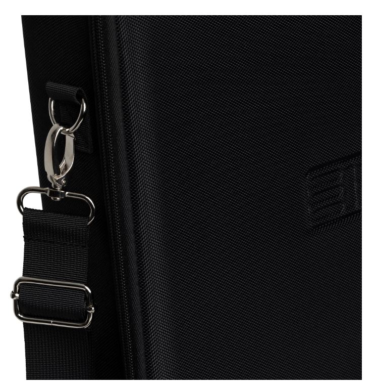 Verfügt über einen Schultergurt mit Metallbeschlägen, Reißverschlüsse und ein integriertes Fach für Kabel
