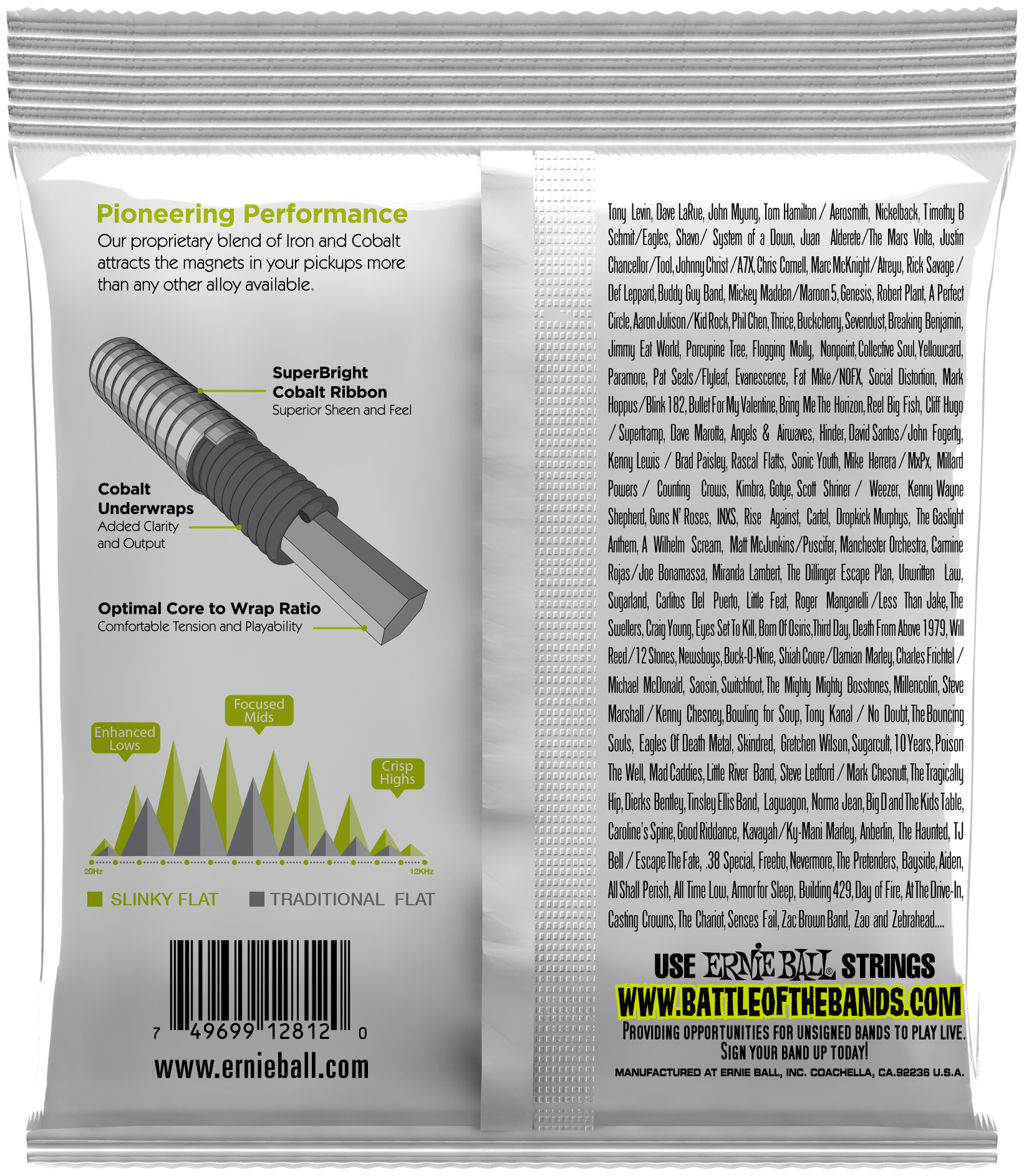 Ausgestattet sind die Saiten mit einer äußeren flachen Wicklung aus SuperBright Cobalt und einer inneren Kobaltwicklung
