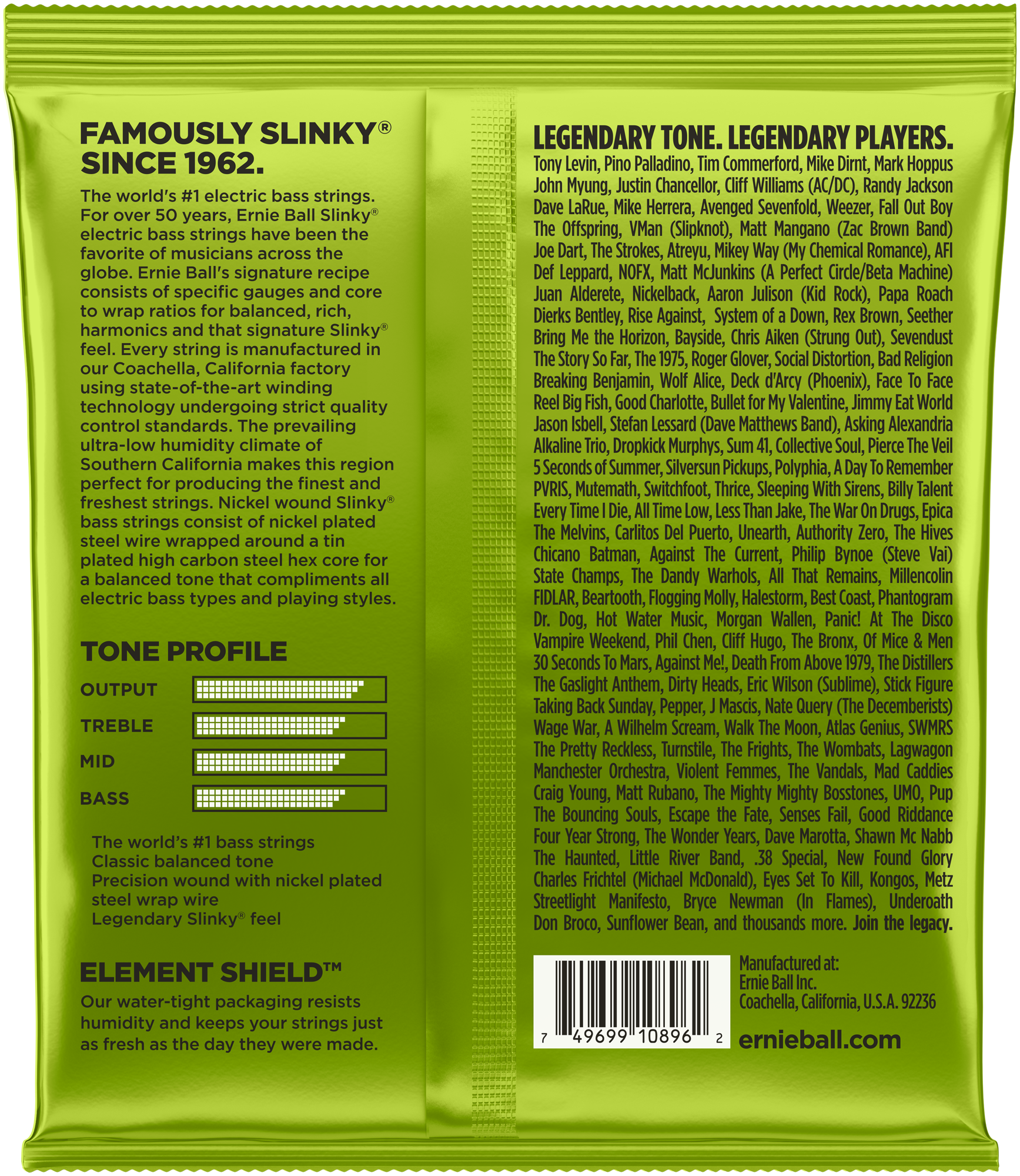 Für die Ernie Ball Medium Scale Bass Saiten nutzt man die gleichen Produktionsmethoden und Materialien wie für die beliebten Slinky Nickel Wound Saiten